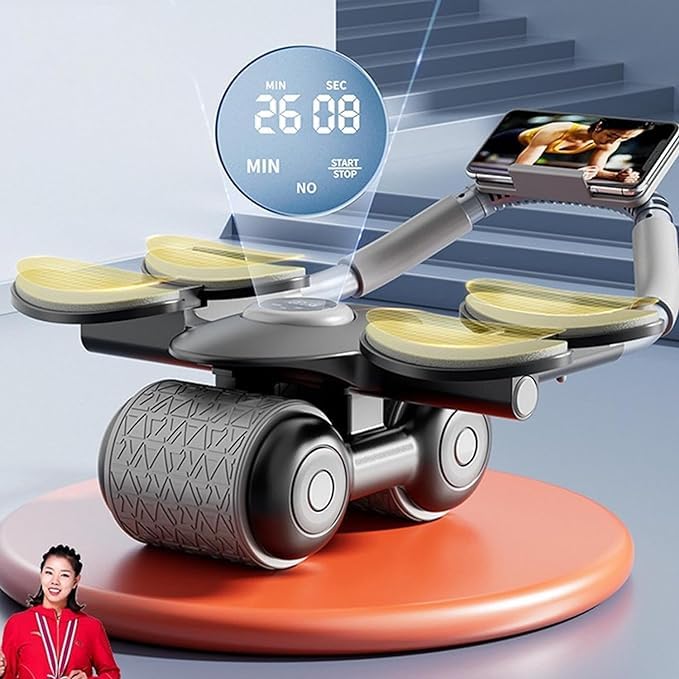 Stay Entertained: Built-in Mobile Phone Holder for Music Motivation – Why settle for a dull workout session? The Exercise Roller Wheel comes with a convenient mobile phone holder, allowing you to listen to your favorite tunes and stay motivated while exercising. Combine fitness and entertainment for an unbeatable experience. Ready to groove and move?