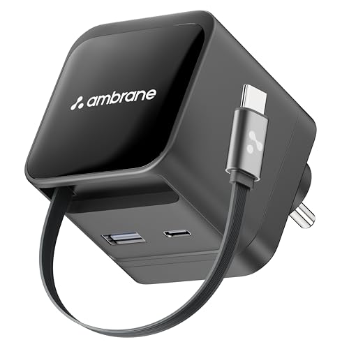 Ambrane 65W GaN Superfast Wall Charger with Type-C Cable, 65W Output Compatible with MacBook & Type-C Laptop Charging, iPhone, Samsung, OnePlus, Nothing (Charge 65,Black)