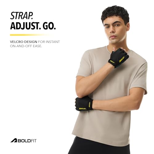COMFORTABLE & BREATHABLE: The well-ventilated back and finger of Boldfit hand gloves for gym boast their skin-friendly and resilient fabric that offers you amazing comfort. What is really neat about these is the holes at back design, which allows your hands to breathe so your hands won’t get sweaty and the workout gloves men and women won’t be smelly. The wrist wraps are tightened and loosened with velcro, providing the user the ability to adjust to their personal comfort.