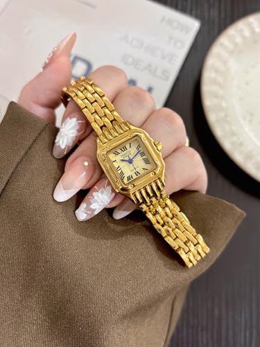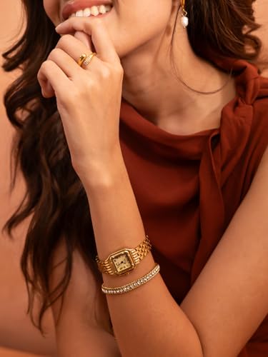 Empress Gold-Toned Watch for Women | Vintage-Inspired Square Dial Analogue Quartz Wristwatch | 18k Gold Plated Jewellery | Gift for Girlfriends & Wives