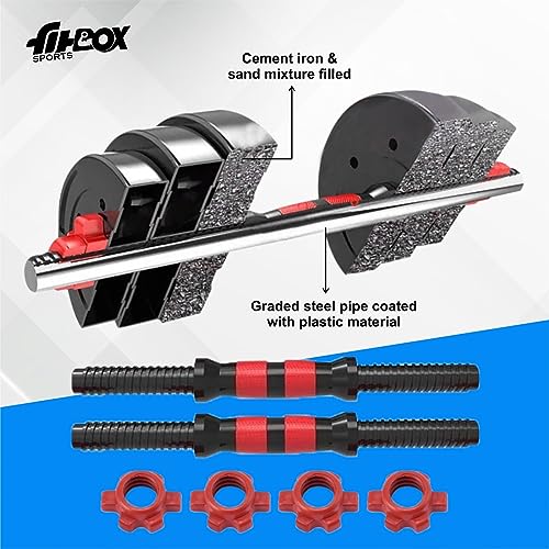 FitBox Sports Intruder 20 Kg Adjustable PVC Dumbbells Weights With Dumbbells Rods For Home Gym & Strength Training, 10 Kg X 2 (Black)