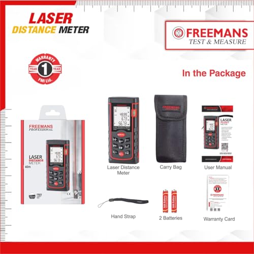 1-YEAR WARRANTY CARD. The laser distance meter is portable and comes complete with Laser Meter, Carry Pouch, Sling, Instruction Manual, Batteries and Warranty card.