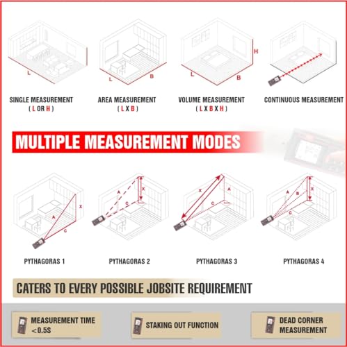 PROFESSIONAL LEVELS OF ACCURACY: The laser distance meter provides an accuracy of upto +/-1.5mm. A Vial bubble is present for increased levels of precision. Available in 40m, 60m and 100m measurement ranges.