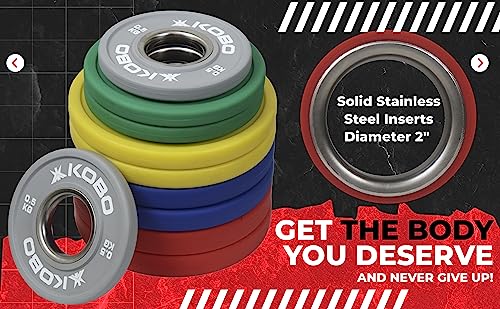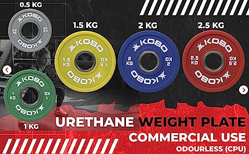 Kobo Urethane Olympic Fractional Plates/Fractional Weight Plates 2 inch Steel Ring Olympic Weightlifting Crossfit Gym Eco-Friendly Competition CPU Plate for Incremental Weights
