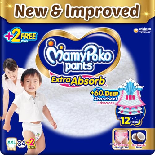 MamyPoko Pants Extra Absorb Baby Diapers, XX-Large (XXL), 34 count(+2) Free Diaper, 15-25 kg