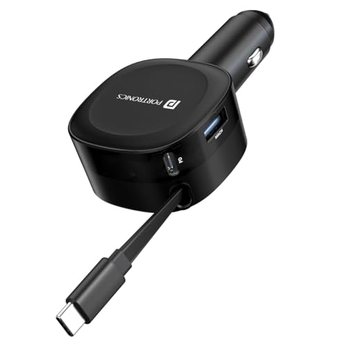 Portronics Car Power Flexo, 3-in-1 60W Car Charger, Retractable Cable (30W Type-C PD), Dual Port (18W USB Type-A,30W Type-C), for Power Bank, Phones, Tablets, Earbuds (Black)