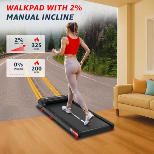 PowerMax Fitness Walkpad-2 Under-Desk Treadmill for Home Use | 3.0 HP Motor, 2% Manual Incline, Shock Absorption 110kg Weight Capacity