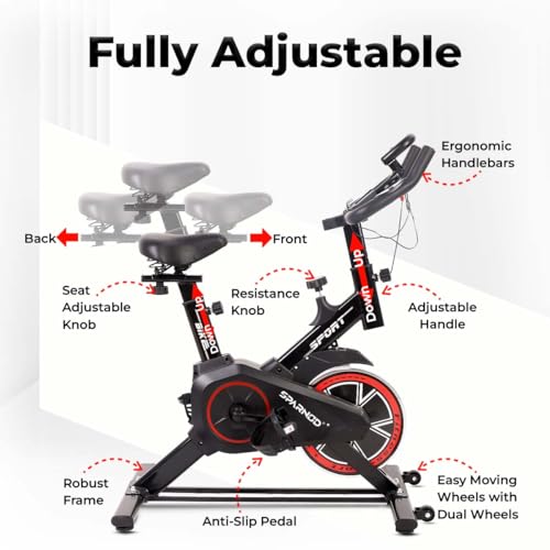 Be the first to review “SPARNOD FITNESS SSB-08 Spin Bike Exercise Cycle for Home Gym with 8kg Flywheel, LED Display, Adjustable Resistance, Silent Belt Drive, 4-way Adjustable Cushioned Seat and 2-way Handlebar (SSB-08 (8kg Flywheel))”