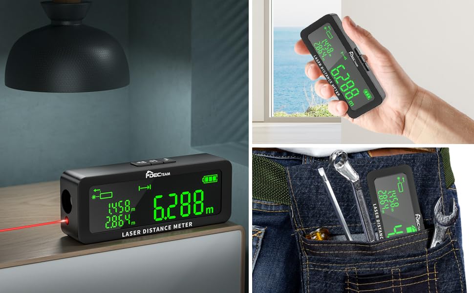 WIDE MEASUREMENT RANGE AND FAST CALCULATIONS: Capable of measuring distances from 0.05 to 40 meters (0.16 to 131 feet), this tool is versatile enough for both short and long-distance measurements. It performs complex calculations like area, volume, and Pythagorean measurements in less than 0.5 seconds, and can store up to 99 measurements for later use.