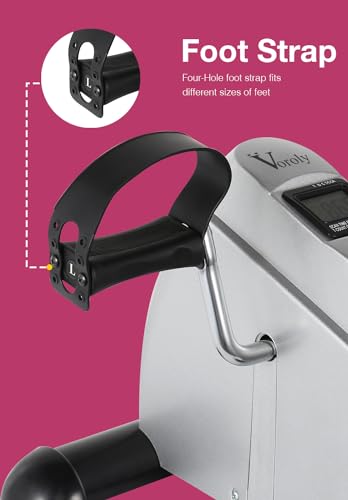 Equipped with an anti-skid mat. The base of the exercise pedal bike which is conveniently outfitted with four anti-slip rubber. The adjustable foot band can flexibly adapt to users’ feet of different sizes to meet different needs.
