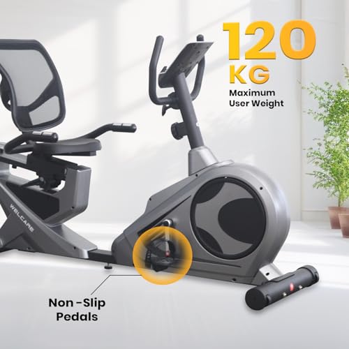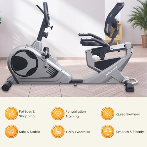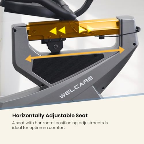 Effortless Mobility : Equipped with transportation wheels and lifting handle, WELCARE recumbent exercise bike offers easy portability and storage, ensuring hassle-free repositioning in your space.