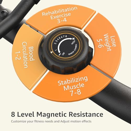 8 levels magnetic resistance allows the user easy to change the intensity during workout. This recumbent exercise bike fits for relaxation, physical therapy, exercise. The tension knobs control the difficulty to simulate riding on different terrains and customize your workout according to fitness level.